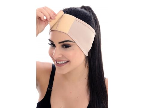 A Faixa para orelha é fabricada com tecido elástico compressivo, maleável, durável e hipoalérgênico. Possui fechamento em 2 regulagens de velcro possibilitando o maior ajuste, as costuras são projetadas para não incomodar ou marcar a pele.